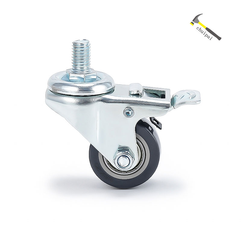 小型2.5寸絲(sī)杆萬向帶刹車腳輪