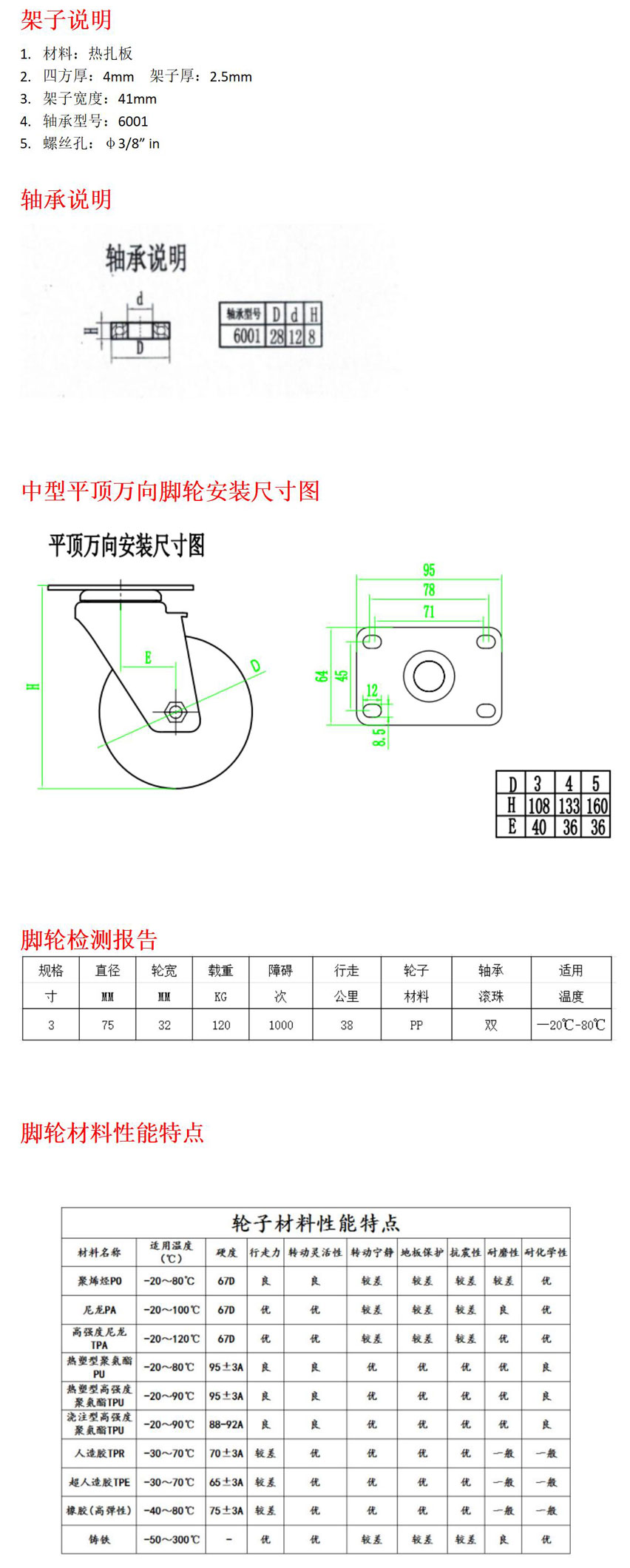中型3寸PP萬(wàn)向白色帶(dài)刹車腳輪