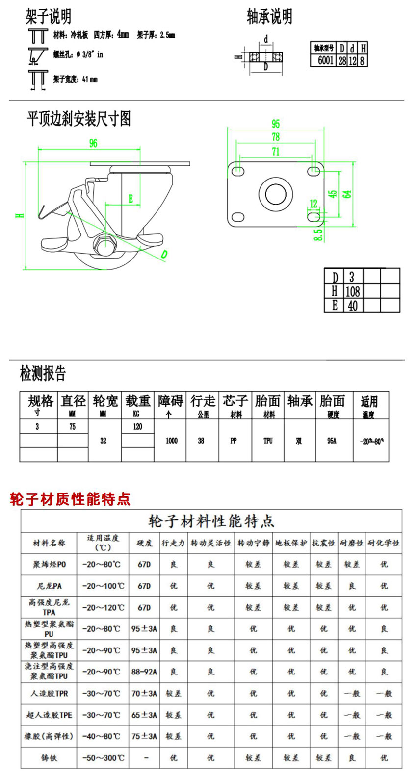 中型3寸平(píng)頂側(cè)刹腳(jiǎo)輪