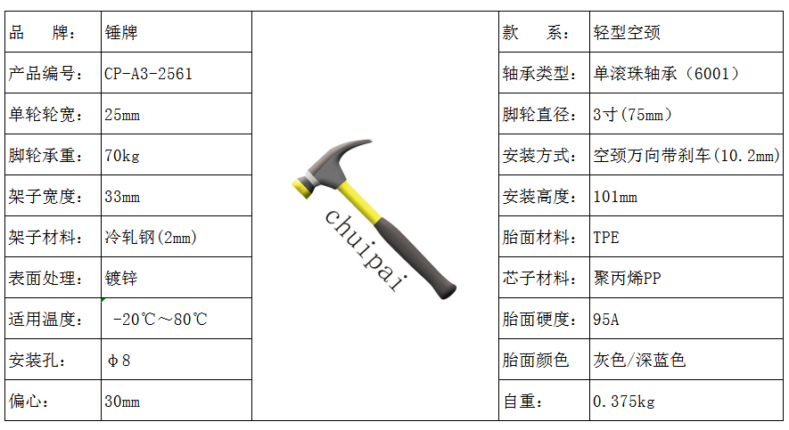 3寸輕型空頸TPE萬向帶刹車腳(jiǎo)輪產品詳情