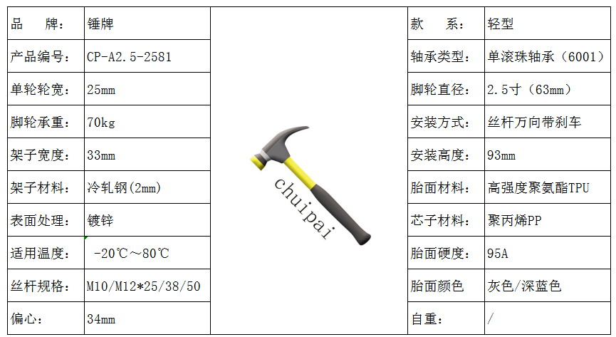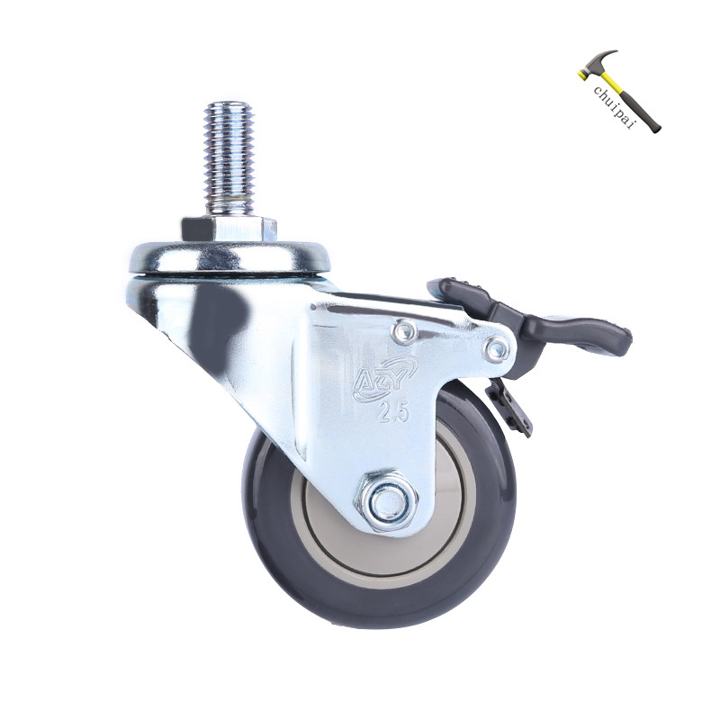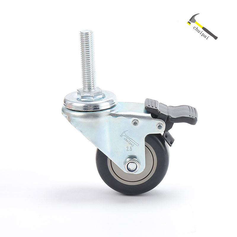 2.5寸輕型絲(sī)杆TPE萬向帶刹車腳輪產品詳情