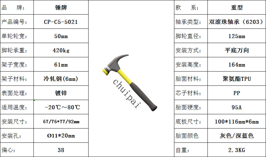 5寸重型萬向腳輪