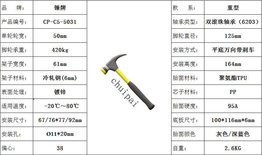 4寸重(chóng)型萬向帶刹車腳(jiǎo)輪